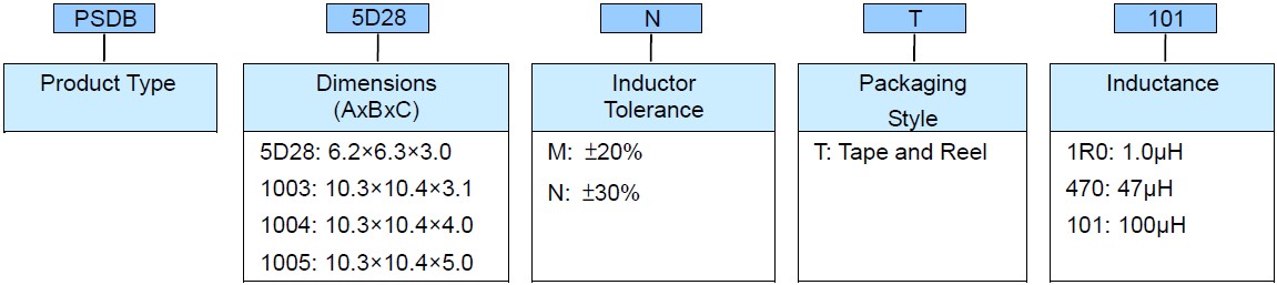 - PSDB1003: 2.2 ~ 470μH, 5.60 ~ 0.48A