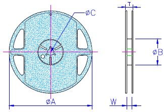 | Type | ØA | ØB | ØC | W | T | Paper Type(EA) | Emboss Plastic Tape(EA) | ![]() |