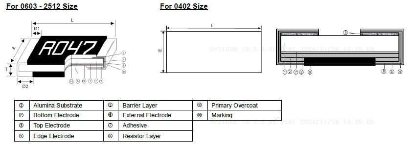 Tamaños de 0402 a 2512, 1%, 5%, resistencia de 10m a 200mohm, bajo TC de 50/100ppm. 1W en tamaño 1206, 1/4W en tamaño 0402