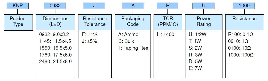 | 0932 | 1/2W | -55 ~ +200℃ | 300V | 1Ω~150Ω | 0.1Ω~150Ω | ±400 |