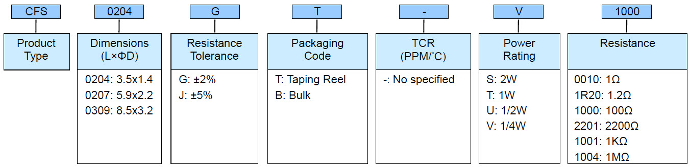 | 0204 | 1/4W | -55 ~ +155°C | 200V | 400V | 1Ω - 1MΩ | |