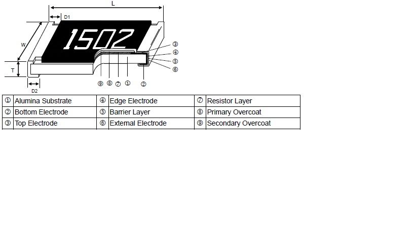 - 이 사양은 루테늄 기반 재료로 된 모든 크기의 직사각형 고정 칩 저항기에 적용됩니다.