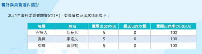 本届审计委员会任期: 114年6月17日至117年6月16日