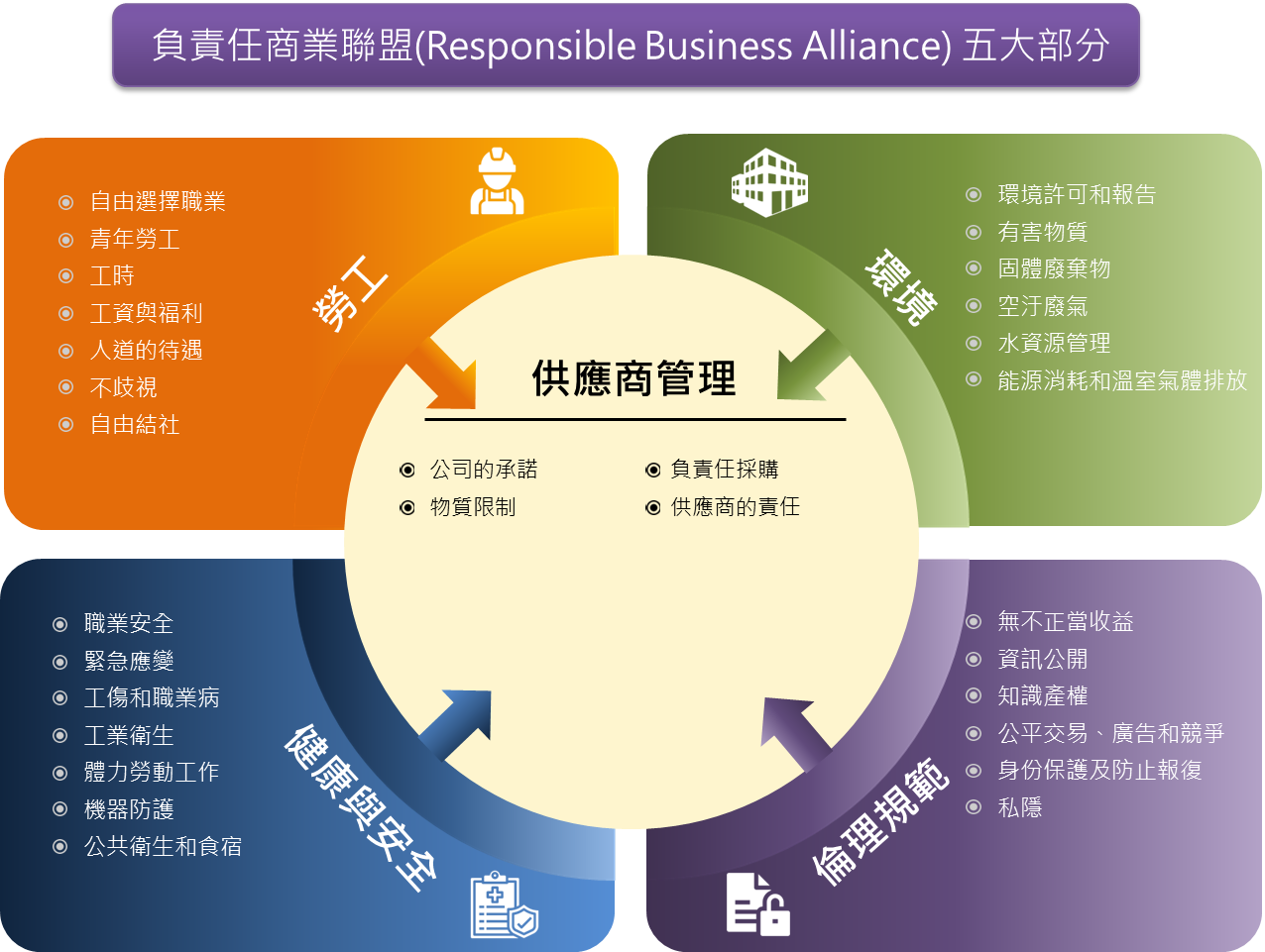 - 持續溝通RBA的勞工道德、環境與職業安全要求。